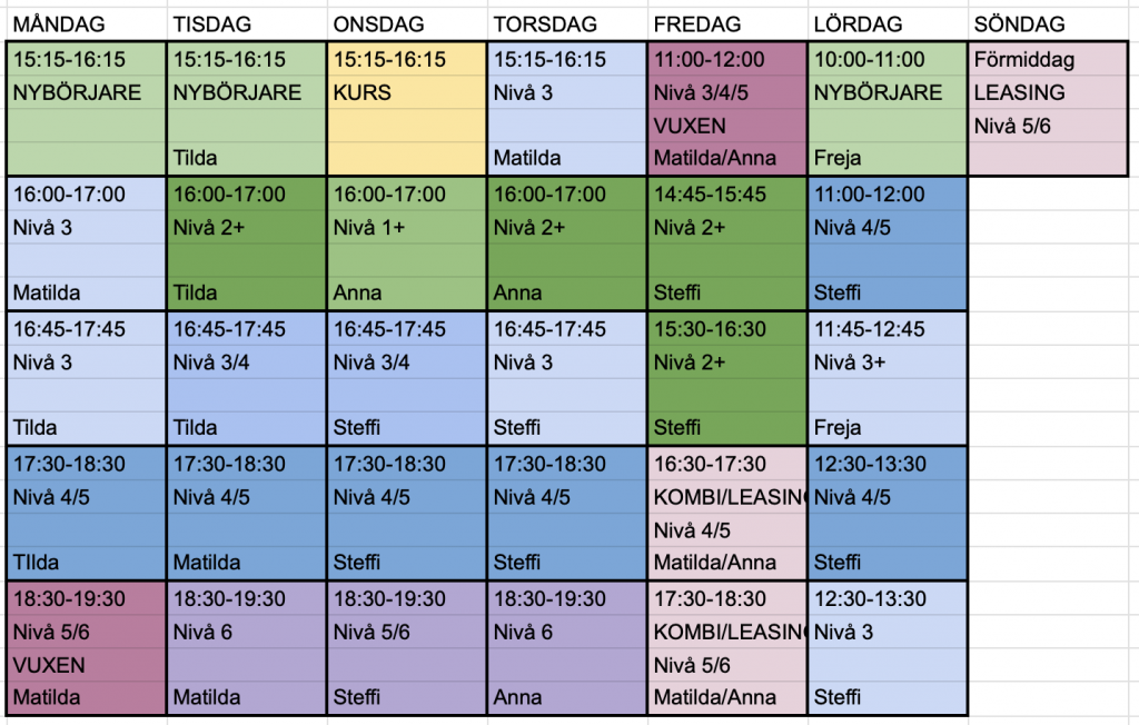 Tisdagar kl.18:30 Nivå 6/7 Ålder: ca 13-16 år – 1 plats ledig